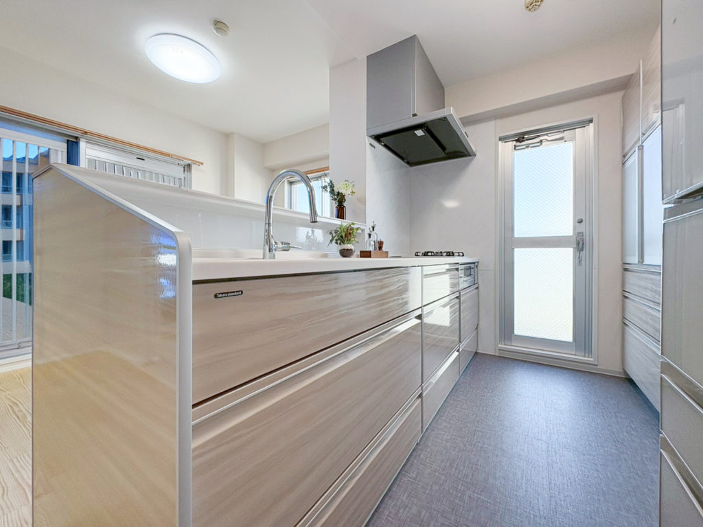 収納が備えついているタカラスタンダードのキッチンを使用。
